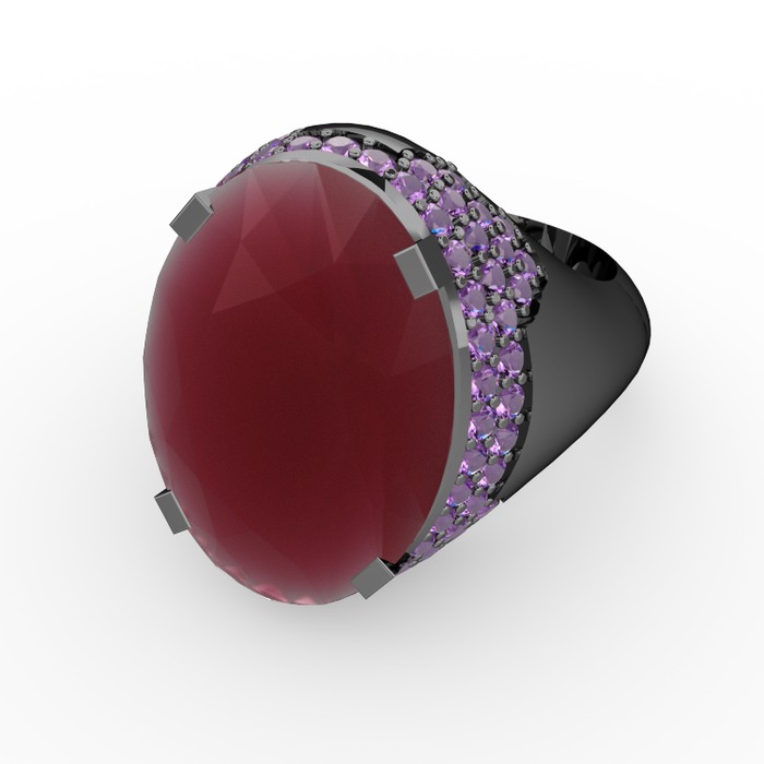 Kök yakut ve ametist 925 ayar siyah rodyum kaplama gümüş yüzük