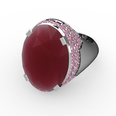 Kök yakut ve pembe kuvars 18 ayar beyaz altın yüzük