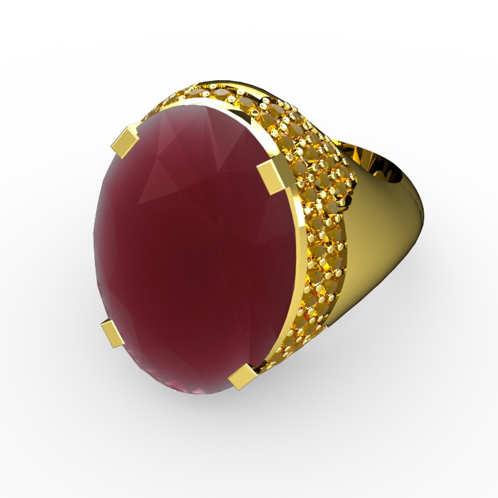 Kök yakut ve sitrin 18 ayar altın yüzük