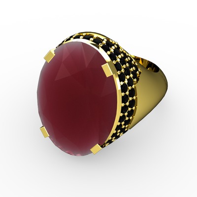 Kök yakut ve siyah zirkon 925 ayar altın kaplama gümüş yüzük
