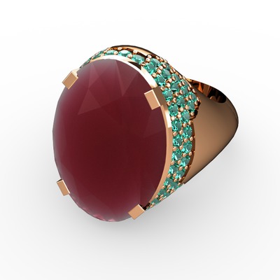 Kök yakut ve yeşil kuvars 925 ayar rose altın kaplama gümüş yüzük