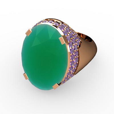 Kök zümrüt ve ametist 14 ayar rose altın yüzük