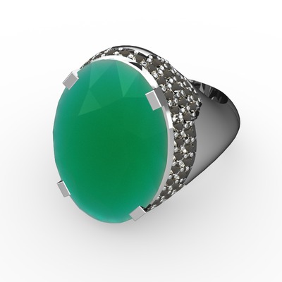 Kök zümrüt ve dumanlı kuvars 8 ayar beyaz altın yüzük