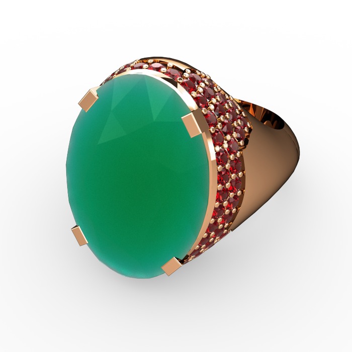 Kök zümrüt ve garnet 8 ayar rose altın yüzük