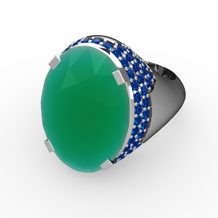 Kök zümrüt ve lab safir 18 ayar beyaz altın yüzük