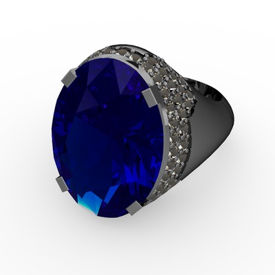 Lab safir ve dumanlı kuvars 925 ayar siyah rodyum kaplama gümüş yüzük