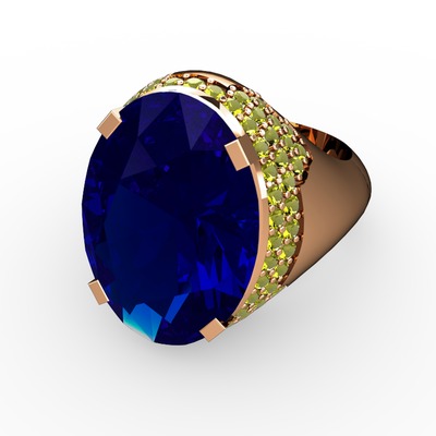 Lab safir ve peridot 14 ayar rose altın yüzük