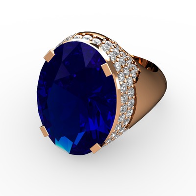 Lab safir ve pırlanta 925 ayar rose altın kaplama gümüş yüzük (0.913 karat)