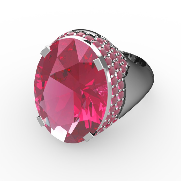 Pembe kuvars ve kök yakut 925 ayar gümüş yüzük