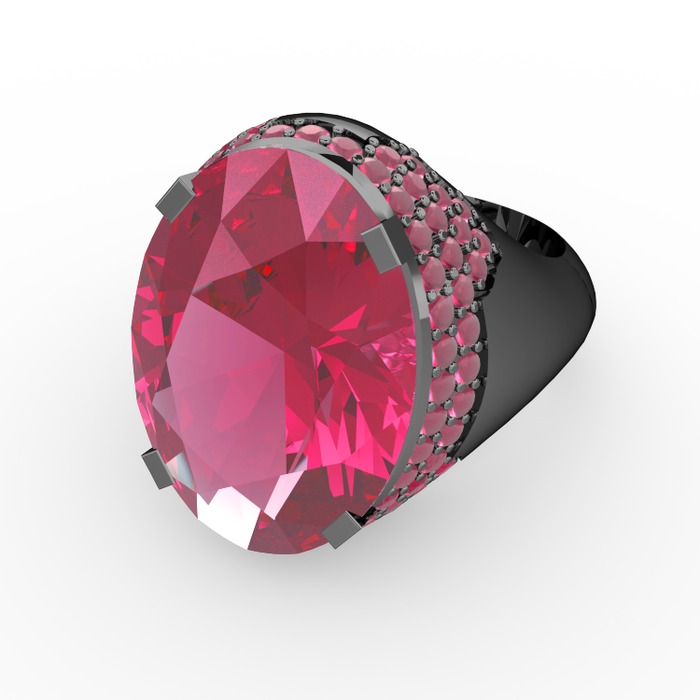 Pembe kuvars ve kök yakut 925 ayar siyah rodyum kaplama gümüş yüzük