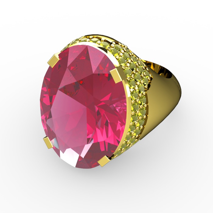 Pembe kuvars ve peridot 18 ayar altın yüzük