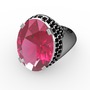 Pembe kuvars ve siyah zirkon 8 ayar beyaz altın yüzük