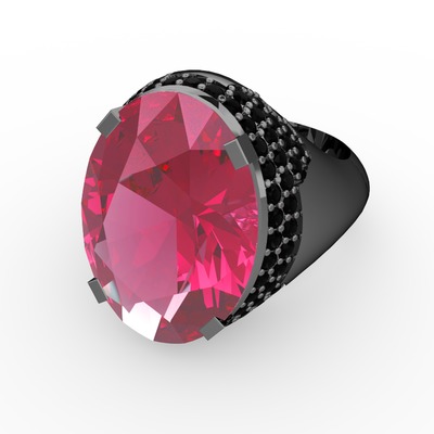 Pembe kuvars ve siyah zirkon 925 ayar siyah rodyum kaplama gümüş yüzük