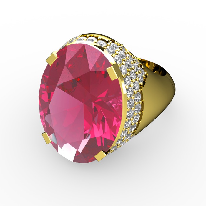Pembe kuvars ve swarovski 14 ayar altın yüzük