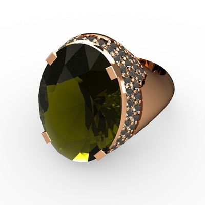 Peridot ve dumanlı kuvars 925 ayar rose altın kaplama gümüş yüzük