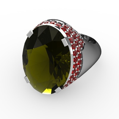 Peridot ve garnet 8 ayar beyaz altın yüzük