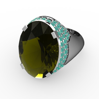 Peridot ve kök zümrüt 925 ayar gümüş yüzük