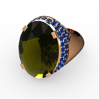 Peridot ve lab safir 14 ayar rose altın yüzük