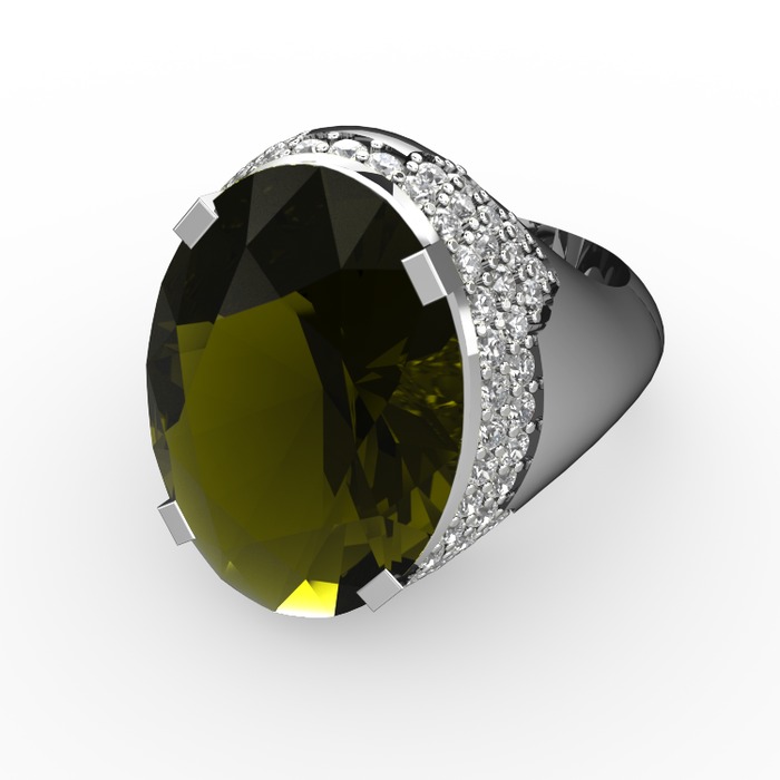 Peridot ve pırlanta 14 ayar beyaz altın yüzük (0.913 karat)
