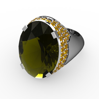 Peridot ve sitrin 18 ayar beyaz altın yüzük