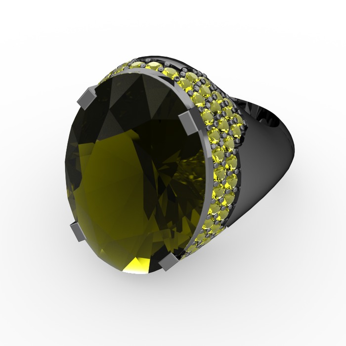 Peridot 925 ayar siyah rodyum kaplama gümüş yüzük