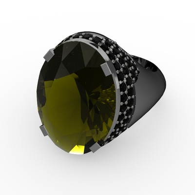 Peridot ve siyah zirkon 925 ayar siyah rodyum kaplama gümüş yüzük