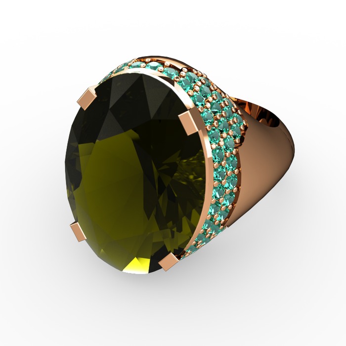 Peridot ve yeşil kuvars 14 ayar rose altın yüzük