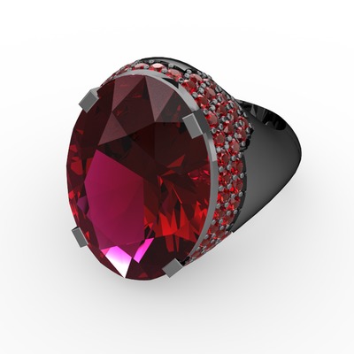 Rodolit garnet ve garnet 925 ayar siyah rodyum kaplama gümüş yüzük