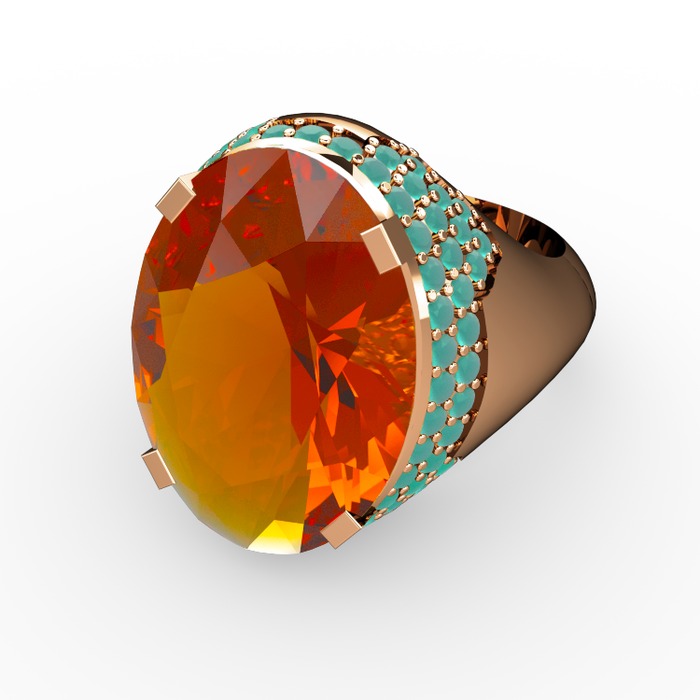 Sitrin ve kök zümrüt 18 ayar rose altın yüzük