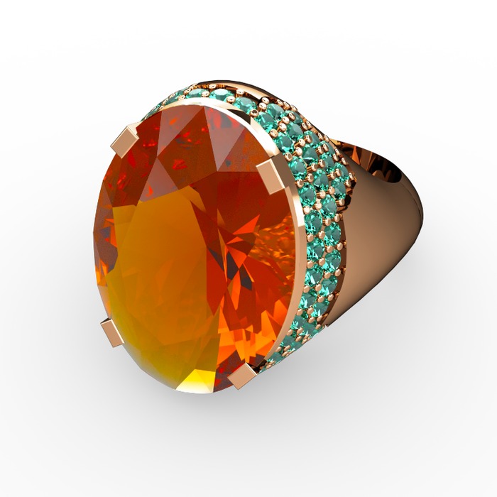Sitrin ve yeşil kuvars 925 ayar rose altın kaplama gümüş yüzük