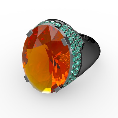 Sitrin ve yeşil kuvars 925 ayar siyah rodyum kaplama gümüş yüzük