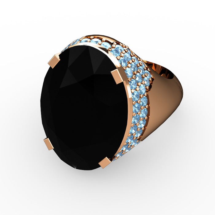 Siyah zirkon ve akuamarin 14 ayar rose altın yüzük