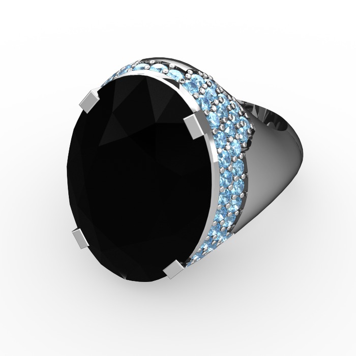 Siyah zirkon ve akuamarin 18 ayar beyaz altın yüzük
