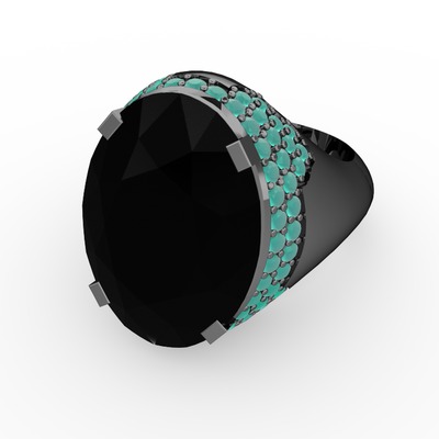 Siyah zirkon ve kök zümrüt 925 ayar siyah rodyum kaplama gümüş yüzük