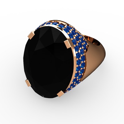 Siyah zirkon ve lab safir 14 ayar rose altın yüzük