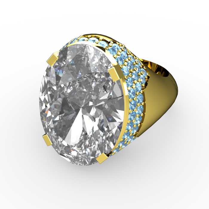 Swarovski ve akuamarin 14 ayar altın yüzük