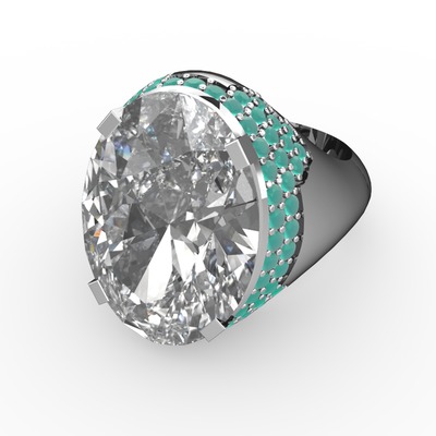 Swarovski ve kök zümrüt 8 ayar beyaz altın yüzük