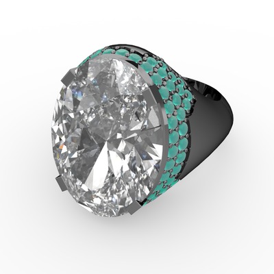 Swarovski ve kök zümrüt 925 ayar siyah rodyum kaplama gümüş yüzük