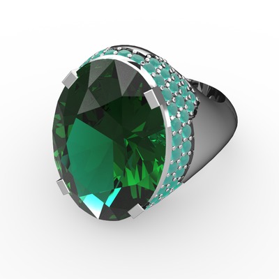 Yeşil kuvars ve kök zümrüt 8 ayar beyaz altın yüzük