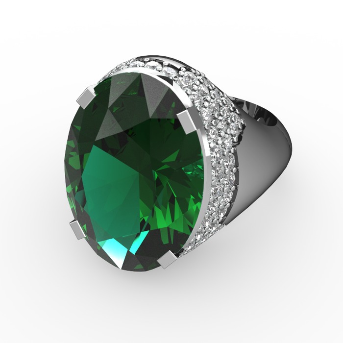 Yeşil kuvars ve pırlanta 14 ayar beyaz altın yüzük (0.913 karat)
