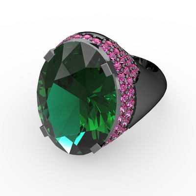Yeşil kuvars ve rodolit garnet 925 ayar siyah rodyum kaplama gümüş yüzük