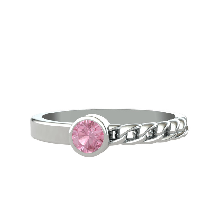 Pembe kuvars 8 ayar beyaz altın yüzük
