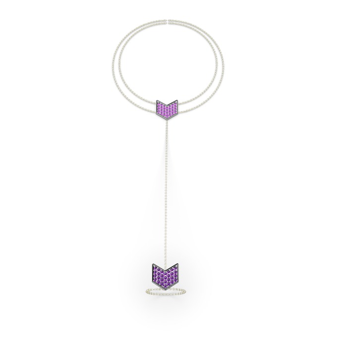 Ametist 18 ayar beyaz altın bilezik (40 cm gümüş rolo zincir)