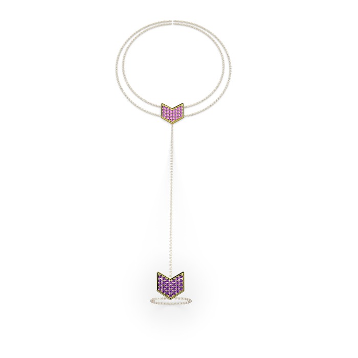 Ametist 8 ayar altın bilezik (40 cm gümüş rolo zincir)