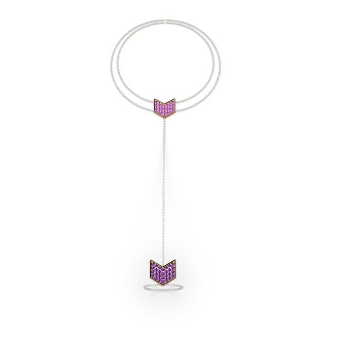 Ametist 8 ayar rose altın bilezik (40 cm beyaz altın rolo zincir)