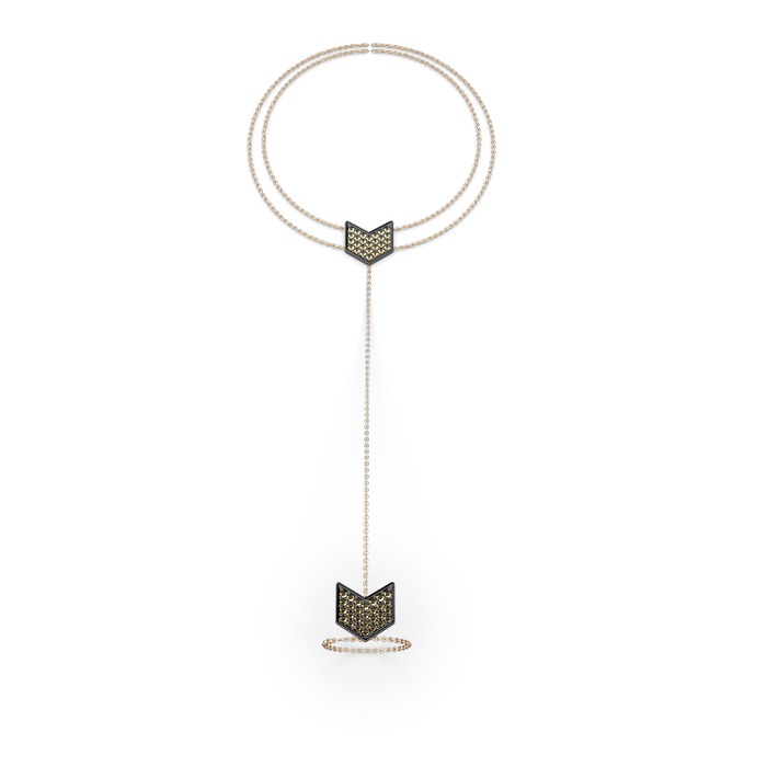 Dumanlı kuvars 925 ayar siyah rodyum kaplama gümüş bilezik (40 cm rose altın rolo zincir)