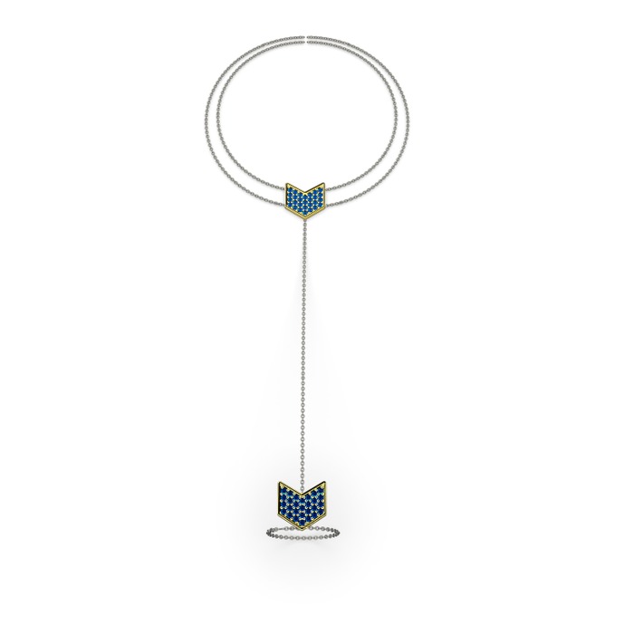 Lab safir 14 ayar altın bilezik (40 cm gümüş rolo zincir)