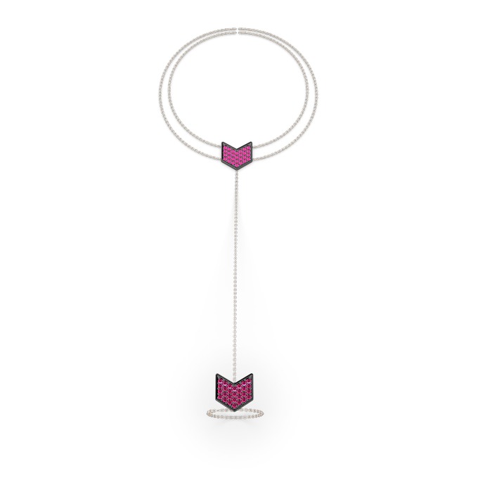 Rodolit garnet 925 ayar siyah rodyum kaplama gümüş bilezik (40 cm rose altın rolo zincir)