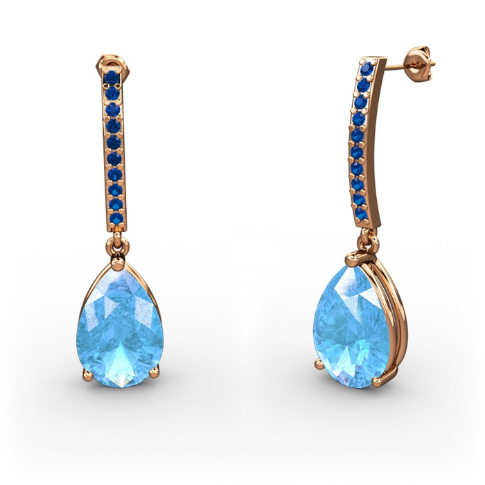 Akuamarin ve lab safir 18 ayar rose altın küpe
