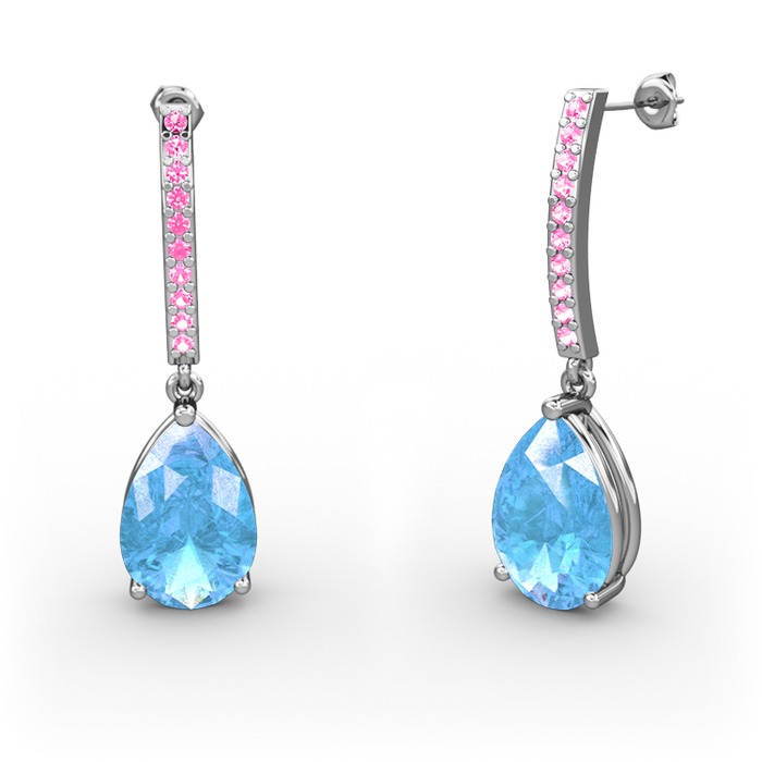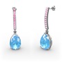 Akuamarin ve pembe kuvars 14 ayar beyaz altın küpe